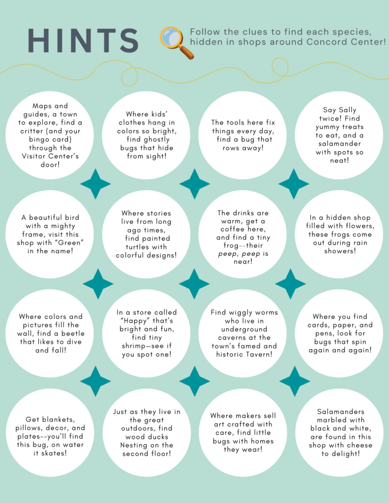 Check out this HINTS page to help you locate species images around Concord Center. Find more downloadable content and your Vernal Pool Protector Certificate by clicking the button below!